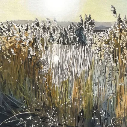 I particularly enjoy the light distribution and reflective qualities of rain on the landscapes around me. In January and February they have certainly been in abundance. Using ink has really helped me to show this inspiration. Flickering light and minimal marks to create the atmospheric work. My sketching creates a more immediate response to what is around me. Some colours are intensified, some are delicate, muted to blend in with the water based landscape that I have found on the Levels and beyond.