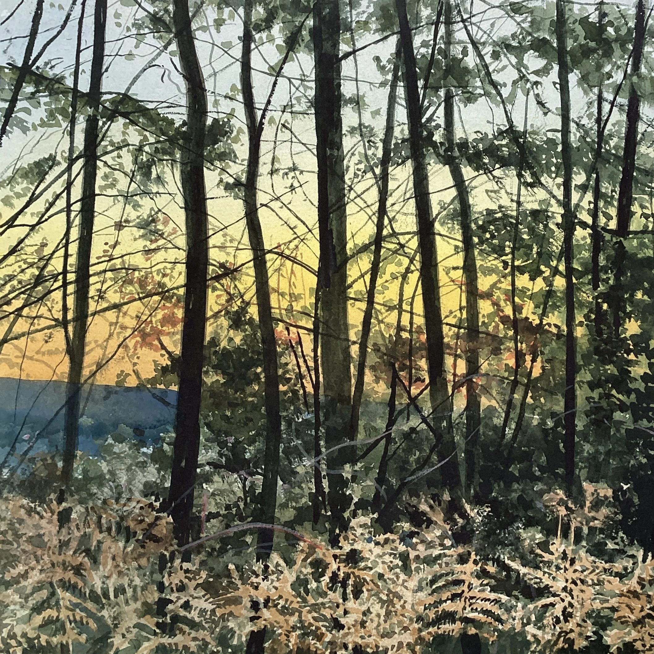 My work for this exhibition is based on the landscapes of West Somerset, primarily those of the Quantock Hills and Exmoor. Working in both watercolour and oil. I aim to create the spirit of the place - its season, light, colour and topography. I am drawn to the quiet places I